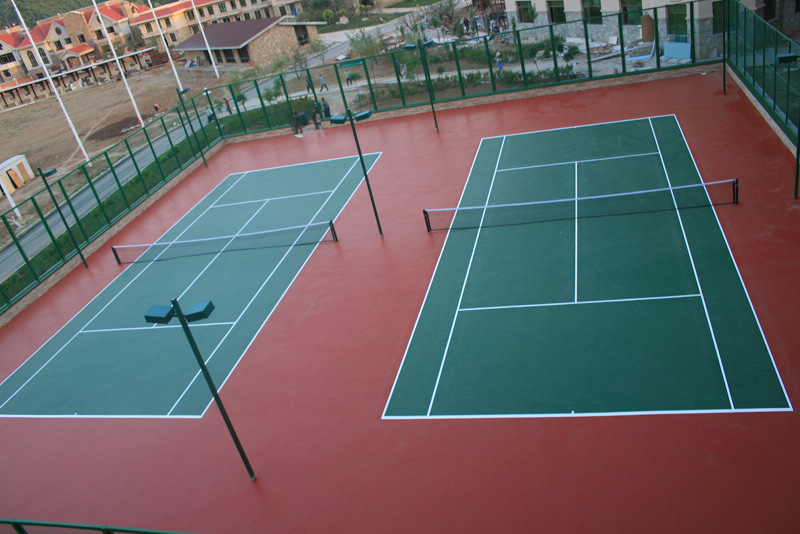 這是一種現(xiàn)場(chǎng)澆鋪用刮板制作在瀝青混凝土上或鋼盤混凝土結(jié)構(gòu)地面上的型材,其工藝主要分為找平結(jié)合層、加強(qiáng)層、耐磨層等多層做法,還有含膠粒的多層做法這種面層材料及工藝的優(yōu)點(diǎn)是平整度高、表面硬度高、耐磨、抗曬、色澤鮮艷、使用壽命長便于管理和維修。這種面層材質(zhì)穩(wěn)定的網(wǎng)球場(chǎng)近年來已開始在**各地普遍采用,管它球速稍快,較之其它類型球場(chǎng),球的彈跳平衡,球員場(chǎng)上跑動(dòng)舒服,是一種既可供娛樂打球也可用做正規(guī)比賽的**次網(wǎng)球場(chǎng)地